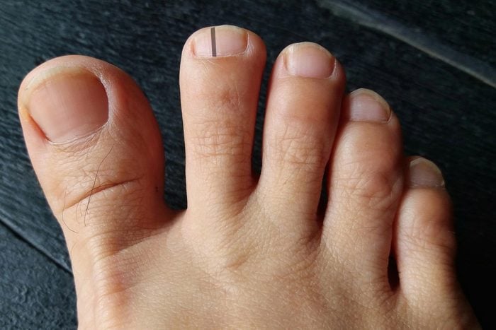 A dark vertical line on a fingernail or toenail could be a sign of melanoma. Dr. Steven Wang, founder of Dr. Wang Herbal Skincare, suggests that if the band has multiple shades of brown and black or is wider than three millimeters, it should be examined by a doctor.