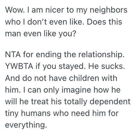 The woman's story serves as a reminder that while individual autonomy is important, it should not overshadow the need for mutual support and understanding in a relationship. Her experience has left her questioning whether she can continue with a partner who does not prioritize her well-being during critical moments.
