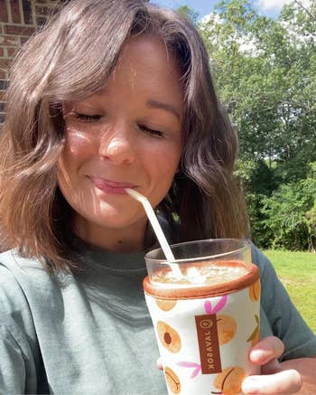 "I was hesitant to buy this, but I absolutely love it! It keeps my drinks cold for hours, the ice stays solid without watering the drinks down, and it prevents condensation. Perfect for iced coffee, soda, or any glass cup. The patterns are adorable as well. I loved it so much I had to order another for my other car!" —Marta