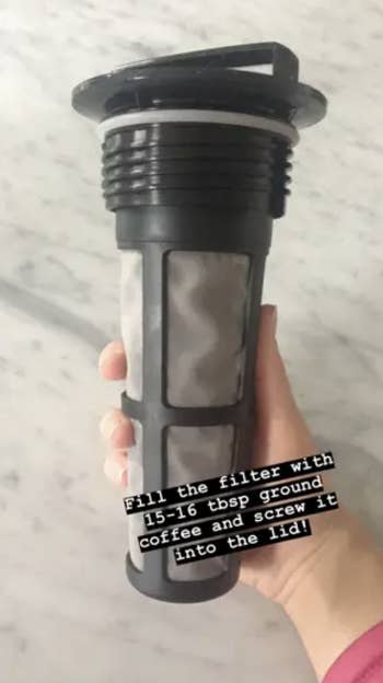 "This little filter is great. It makes the perfect amount of cold brew for a week for me. I usually steep for anywhere between 12–24 hours, depending on how strong I want it to be. Grind your beans coarse and fill with filtered water, and toss it in the fridge, can't be any simpler. I used to always drop $3–$4 a day on iced coffee or the VSC cold brew from Starbucks, so I can't imagine how much money this has saved me." —Jacob S.