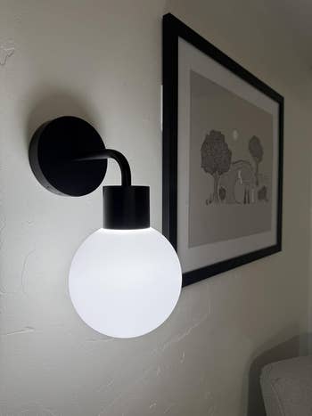 "Completely obsessed... this totally is a lighting game changer! If you're like me and are constantly revamping your home and moving things around, well, this cute, rechargeable, 'no-wiring-needed' light is just the ticket. It took me all of 30 seconds to install, and the brightness settings on the app are perfect. I like that I can set a timer on the light so I don't accidentally leave it on. Mine came with an extra battery, so when the initial one needs to be recharged, I just swap it out. I actually think I'm going to need to buy another one." —Lauren
