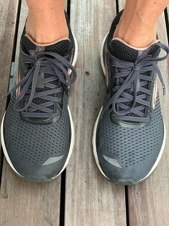 "I saw these on Shark Tank, so decided to try a pair. They are AMAZING! These are in shoes that I wear for workout classes that involve plenty of stepping and cardio ... my shoes do not slip or feel loose at all, but stay as snug as if they had traditional shoelaces. No more loose shoestrings, no more tying, and untying. What a great invention! Hey, you little kids with Velcro fasteners, move over! Grown-up laces are here!" —Leah